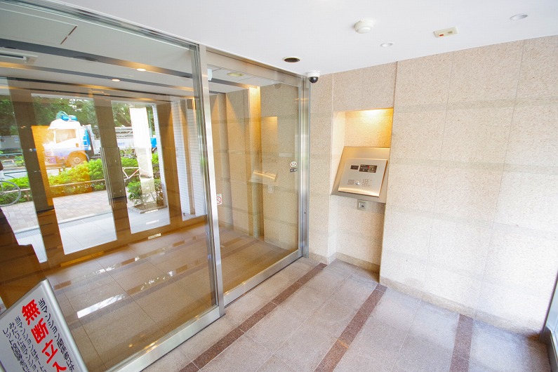 外観は白を基調としたタイル張りで清潔感があります。エントランスにはオートロックが付いているので女性も安心のセキュリティです。
